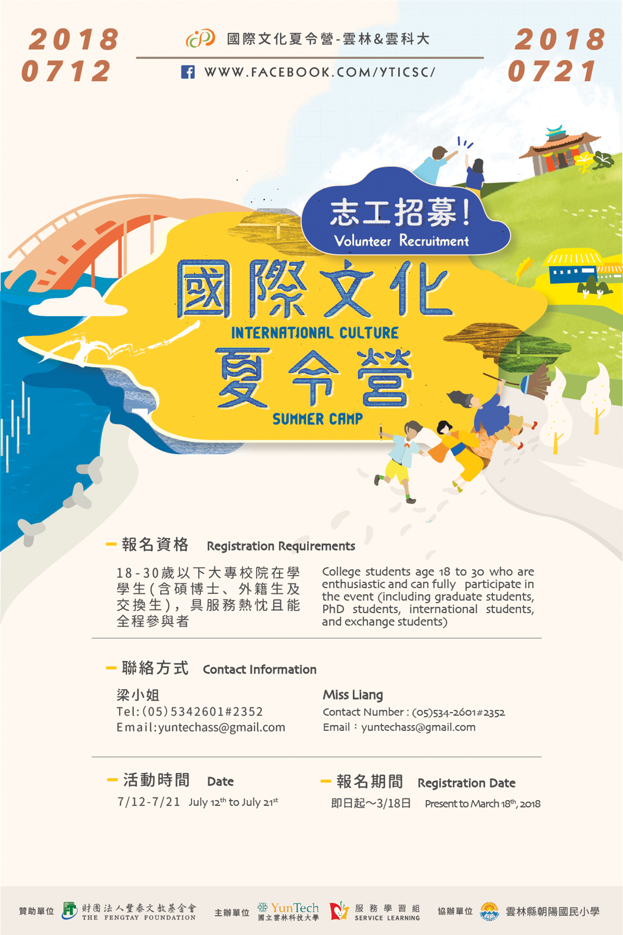 雲林科技大學辦理「2018國際文化夏令營志工招募」有興趣者踴躍報名參加!