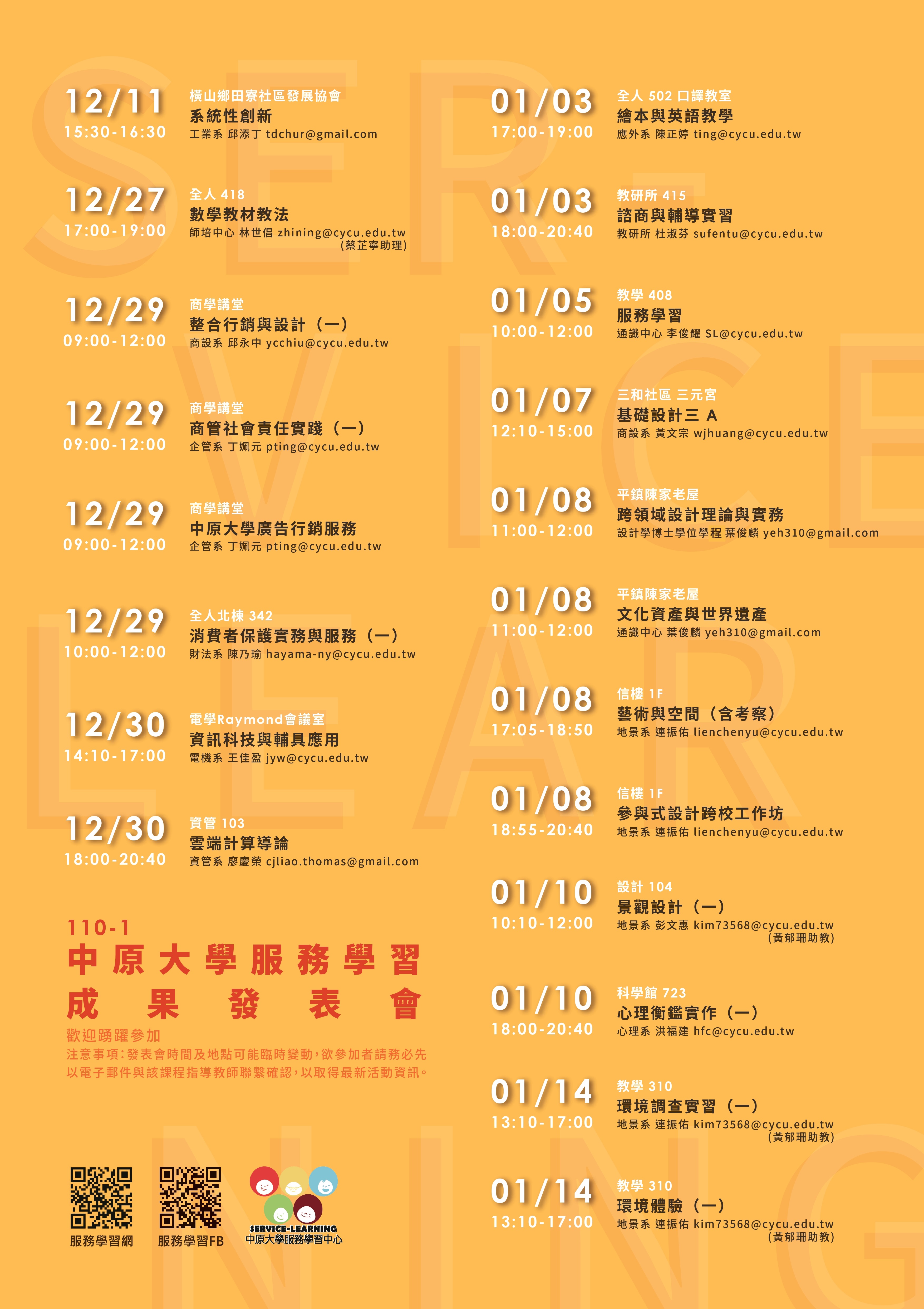 中原大學「110-1學期服務學習課程成果發表會」歡迎師生們踴躍參加
